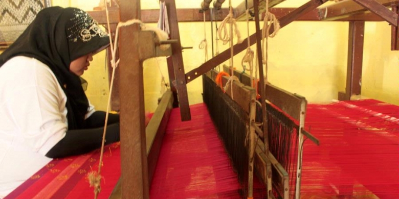 Seorang penenun sedang menyelesaikan kain songket Melayu Riau, Rabu (20/2) di salah satu UKM Songket Riau di Kompleks Widyagraha kecamatan Tampan Pekanbaru Riau. Songket Riau berusaha dilestarikan sebagai salah satu budaya bangsa. | KOMPAS/DAHLIA IRAWATI